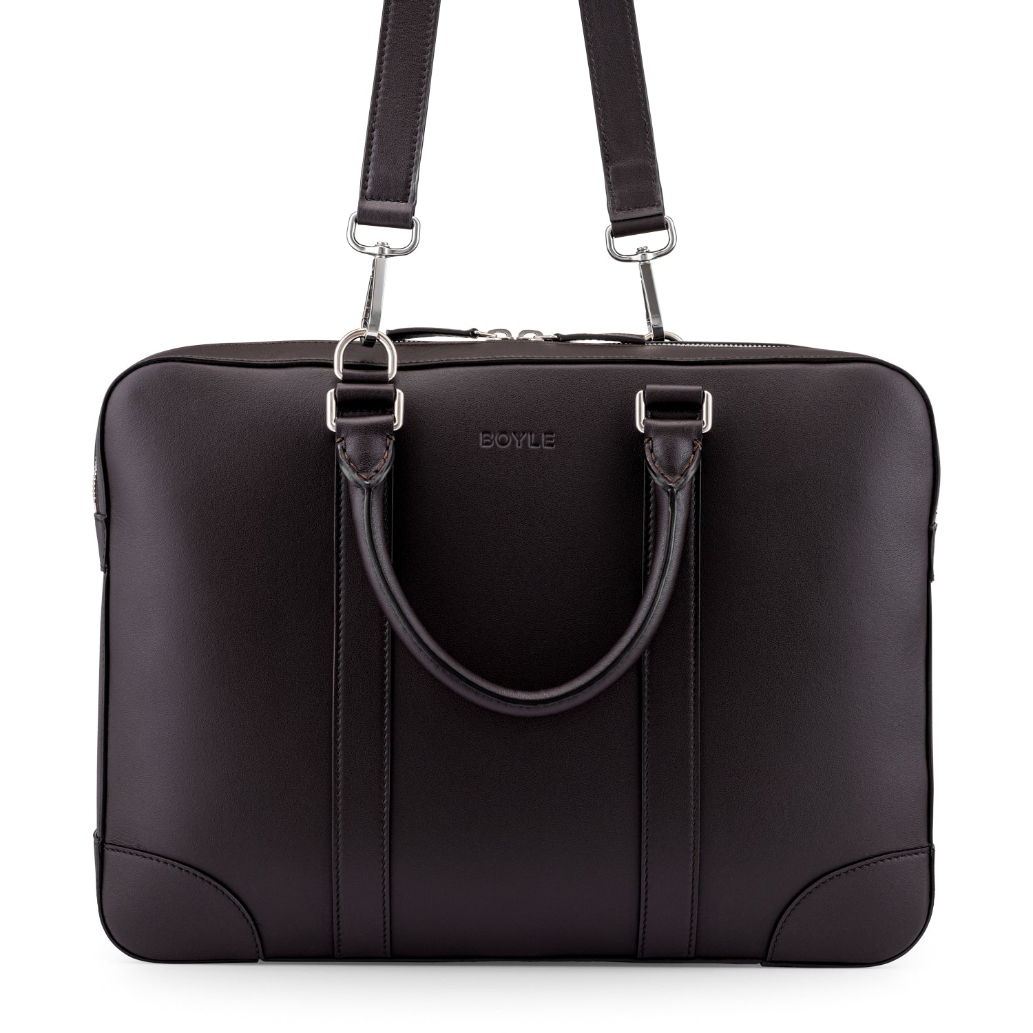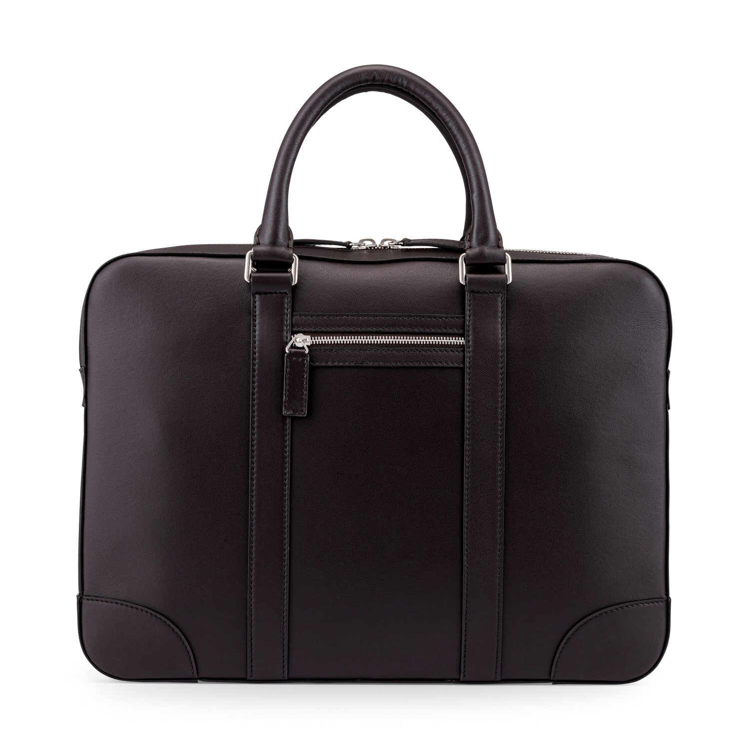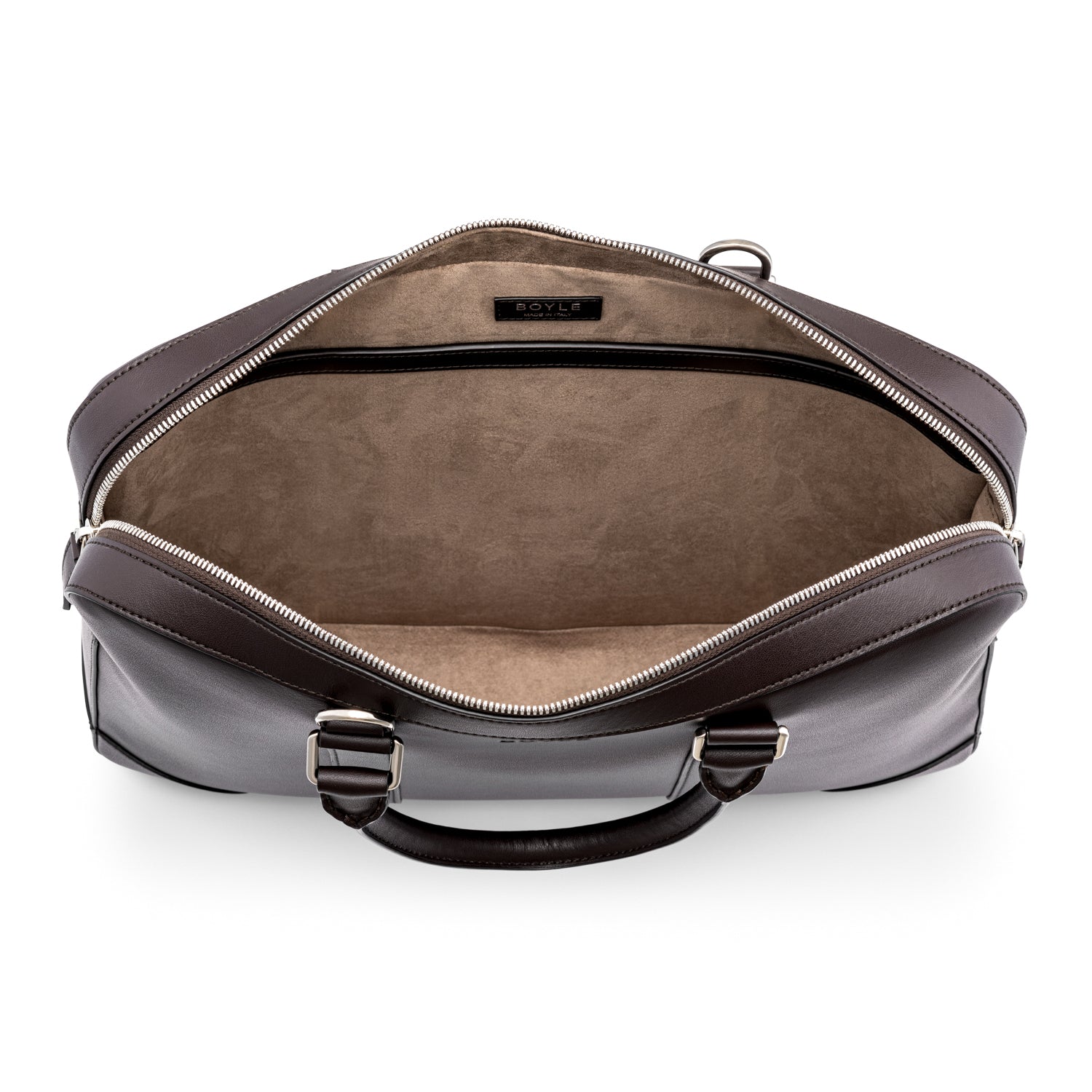 Elegant briefcase that combines a matt Italian calf leather with a lining in soft Alcantara.